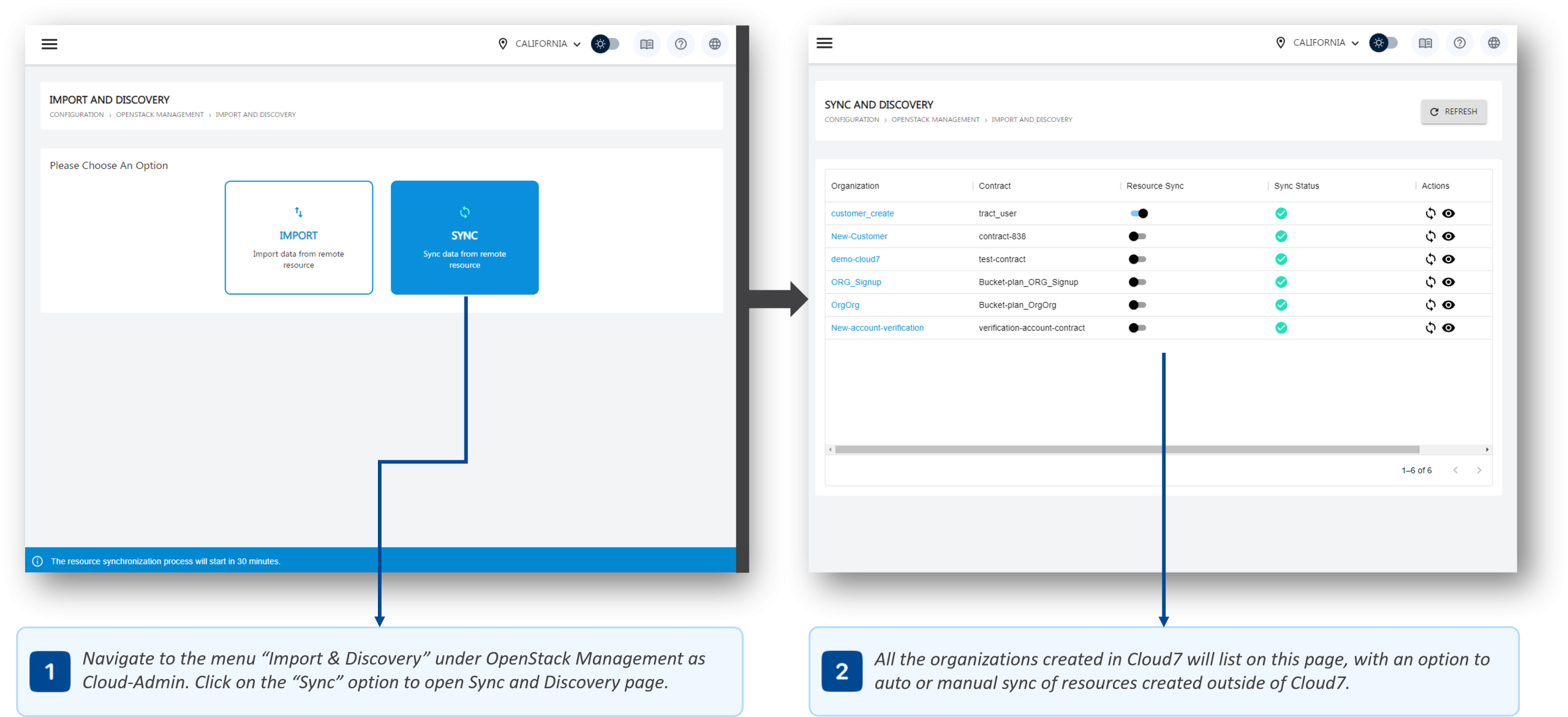 - Click on “Sync” option to open the customer organization list of QCloud having OpenStack Resource Subscriptions.