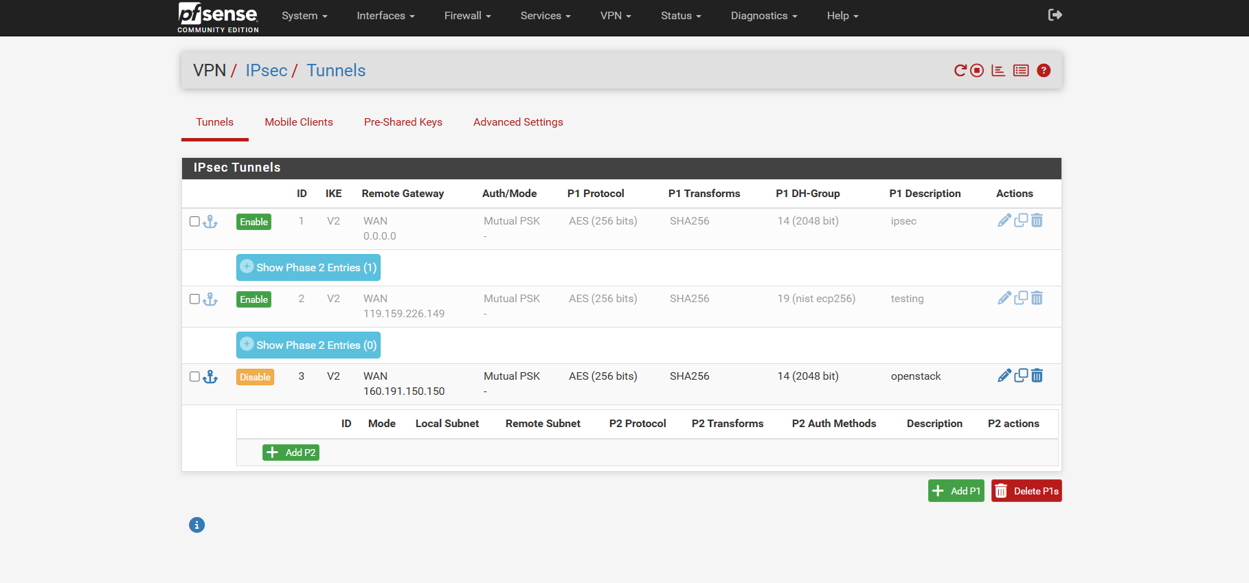 To delete an IPSec Tunnel in pfSense, follow these steps: