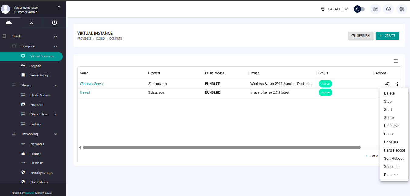 Go to the Virtual Instance section from the left-hand menu. All the VMs will be displayed on the dashboard.