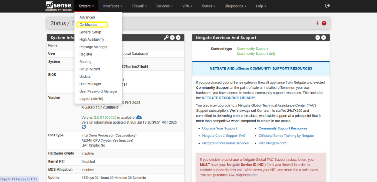 - On the Certificates page, go to the tab: System / Certificates / Certificates